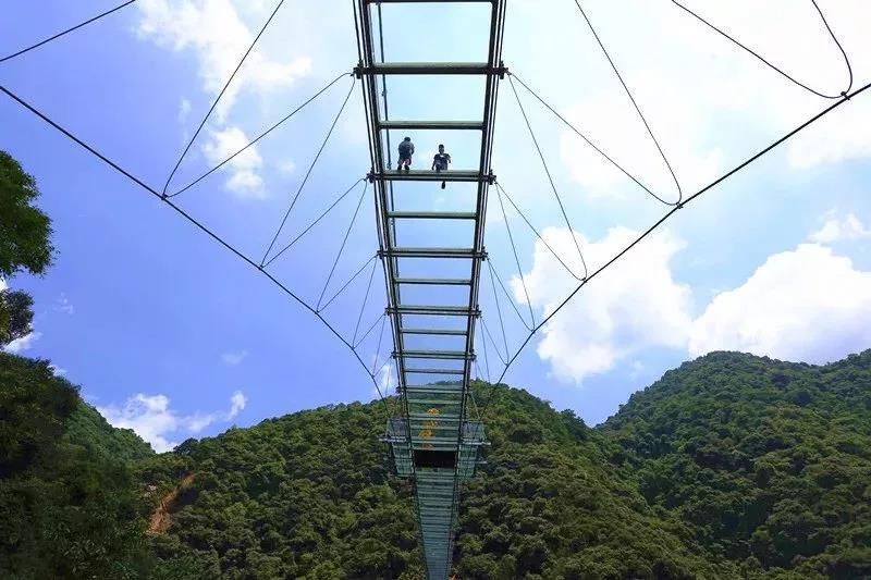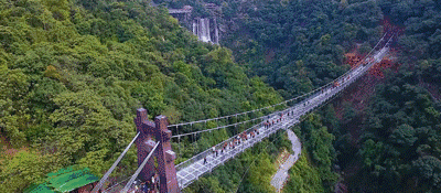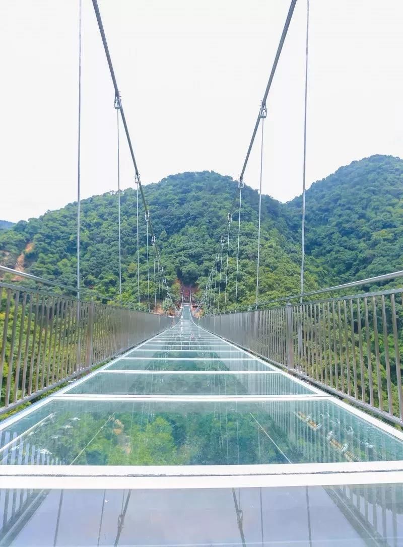 古龍峽玻璃橋全長329米,平均寬度3.8米,最寬處6.8米,橋上2個港灣式透明觀景凸臺位于最寬處,和UFO玻璃平臺遙相呼應(yīng)。作為世界最寬的觀瀑玻璃橋,在國內(nèi)第一家采用超大面積玻璃,橋面可以容納5人并行,也可從容地拍下全身照,面積達40平方米港灣式觀景凸臺設(shè)置了5D聲光電特效裝置,感應(yīng)到游客經(jīng)過時,會出現(xiàn)“山崩地裂”“玻璃破碎”等奇幻效果。經(jīng)浙江大學土木工程系測試,玻璃橋靜態(tài)負載可超過700人。